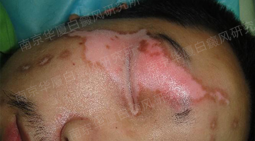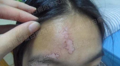 29岁的陈兰是一名家庭主妇,可以说是一位贤妻良母,无论对待孩子还是老公还是公婆,陈兰都是尽心尽责,扮演好每一个角色,同时,为了减轻丈夫的负担,陈兰闲暇之余还去饭店帮人家送外卖,这让丈夫看在眼里,疼在心里,这样忙忙碌碌的工作,导致陈兰的身体出现了一些异常,2年前,偶然的一次机会,陈兰不小心发现自己的额头有白点,由于陈兰的皮肤较黑,非常容易就能看出来。陈兰也没怎么往心里去,但是过了一段时间,白点面积变大了,额头看上去非常难看。情急之下,陈兰去医院检查,结果就被确诊为白癜风。