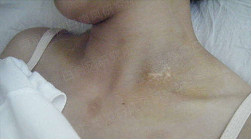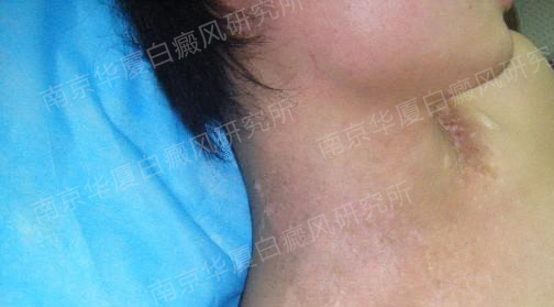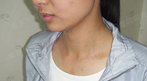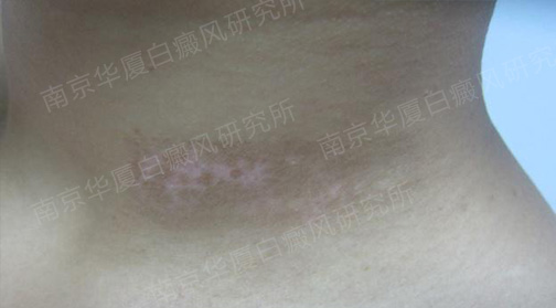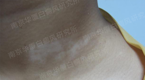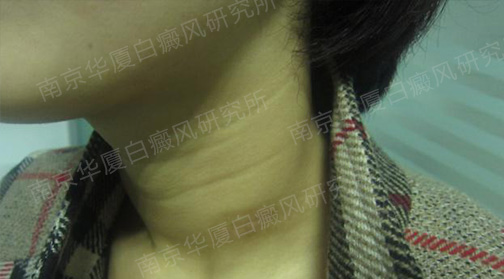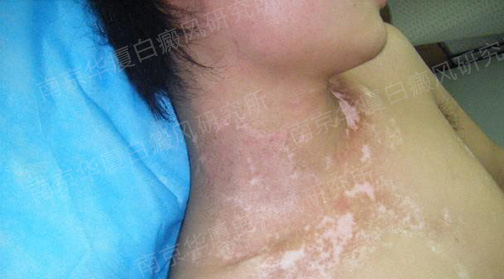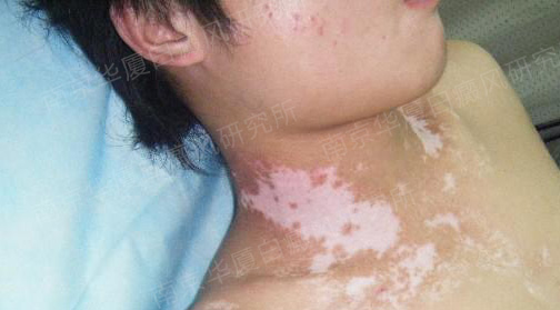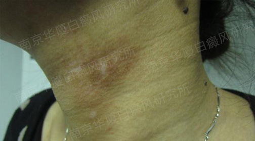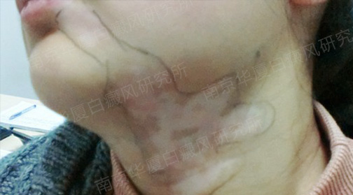 李化春今年32岁,是南京溧水人,虽然年龄不是特别大,但是,32岁的李化春已经是南京某知名房地产公司的老总了,平时应酬较多,长期超负荷的工作让李化春的身体出现了一些问题,今年2月份的时候,李化春发现自己的颈部有白色斑点,于是去医院看医生,医生说是白癜风,这对于他经理级别的人来说是非常要不得的,因此,他治疗心切,就拿了点药随便涂抹,结果导致白斑扩散,后经人介绍,来到我院进行治疗。